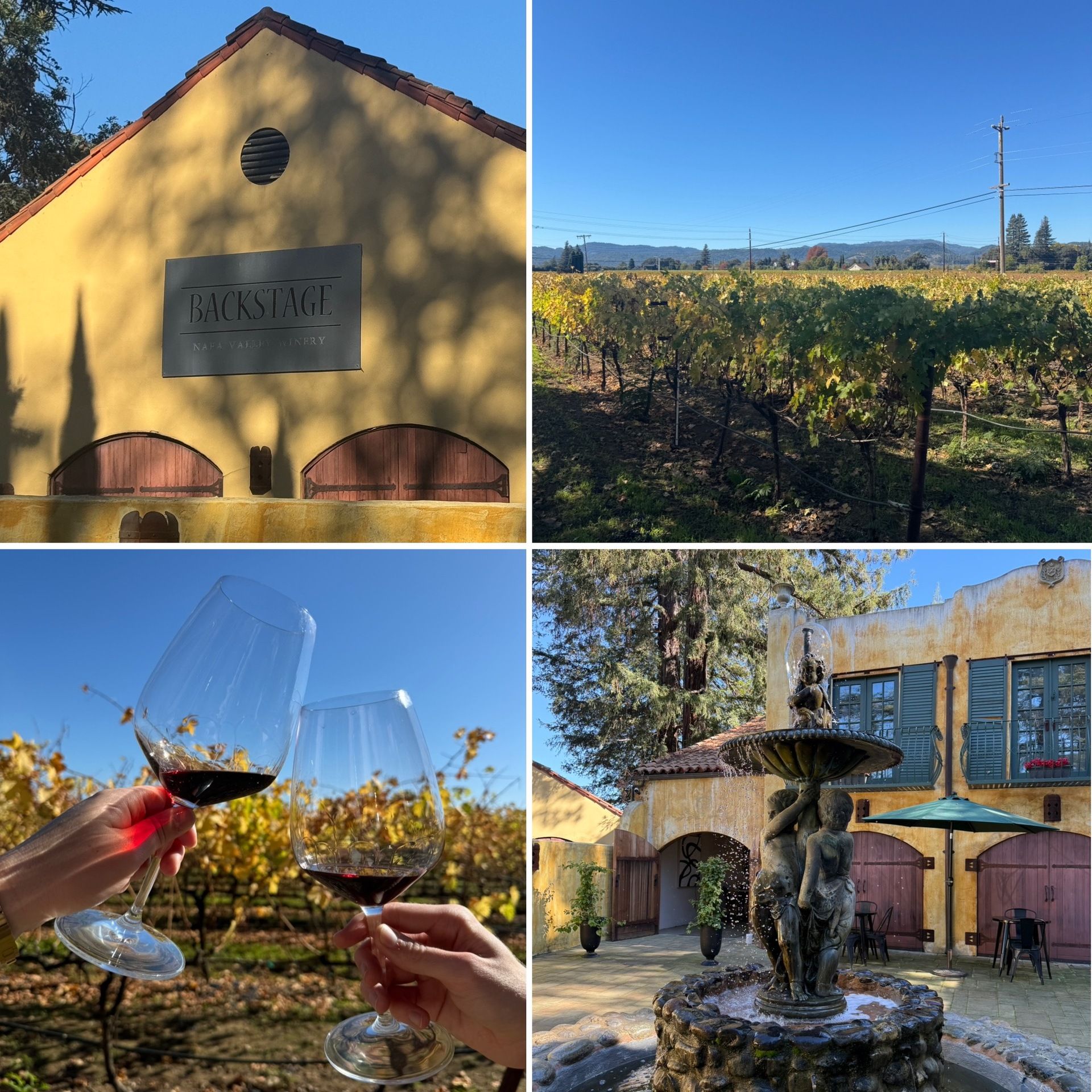 On Sunday (my actual birthday), we did some shopping downtown before our final winery. Our last stop was Backstage Winery, a beautiful old-world Italian building, that at a glance you might of thought you were in Tuscany. As our server showed us through the property, we learned that this was once home to Andretti Wines, as in the famous racer Mario Andretti, which made sense for its Tuscan inspired setting. Angelo Pera took it over and turned it into Backstage Winery in 2010, but has kept up the level of excellence. All of the wines we tried were very approachable, light and delicate. None of the wines that we tried were lackluster, which isn’t too common in all the tastings we have been to. And there’s something to be said about the ambience of hanging out in a vineyard.