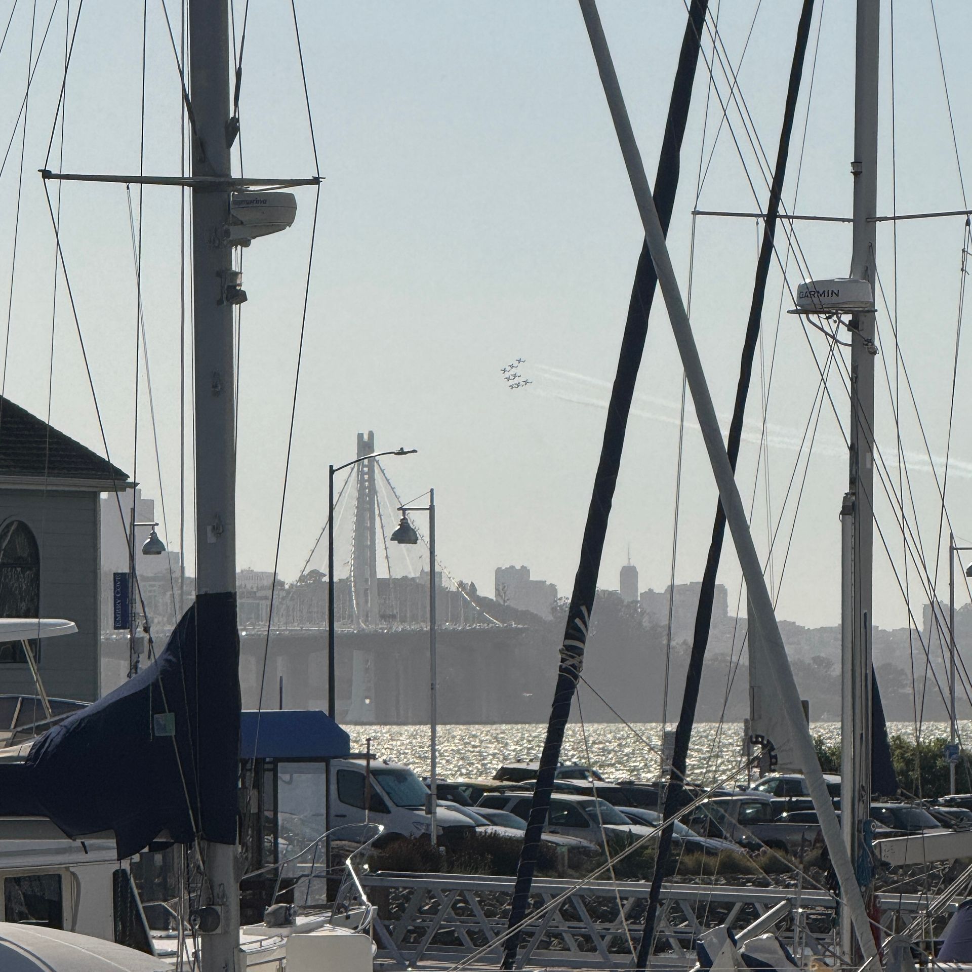 It was also San Francisco Fleet Week. Fleet Week normally culminates in an Air Show done by the Blue Angels, but with the current government shutdown, they were grounded. Just when things looked bleak for an air show, the Canadian Forces Snowbirds swooped in to save the day, and Trader Vic’s ended up being a good place to watch the show!
