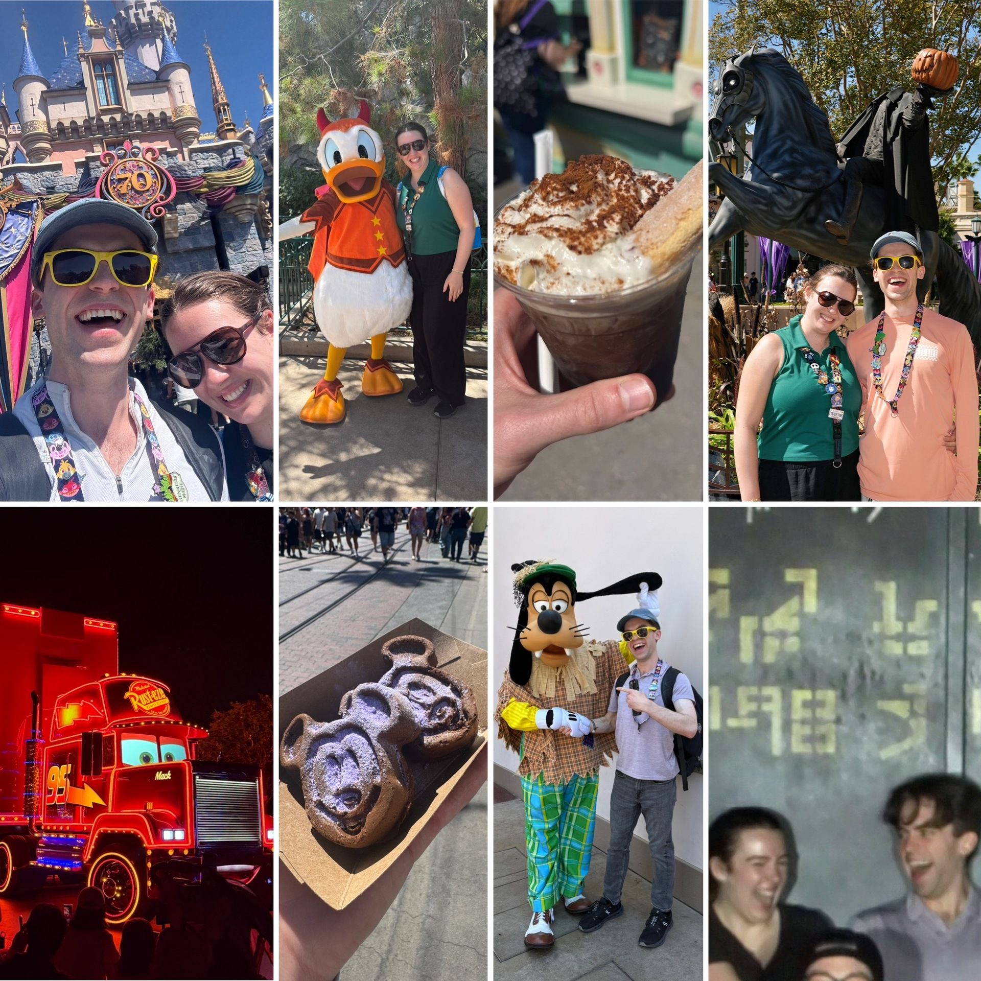 The best way to end the first week of school is to have a long weekend. And the best way to spend a long weekend is to go to Disneyland! Disney is currently celebrating its 70th anniversary and has just started its Halloween season. There were lots of new food items (the pumpkin tiramisu cold brew and ube custard filled chocolate Mickey Waffles being some of the standouts), themed characters (Donald was a devil and Goofy was a scarecrow), and parades (Paint the Night was colorful and luminescent). It feels weird to say it when we were surrounded by people the entire trip, but we really enjoy getting to spend some quality time together with just the two of us.