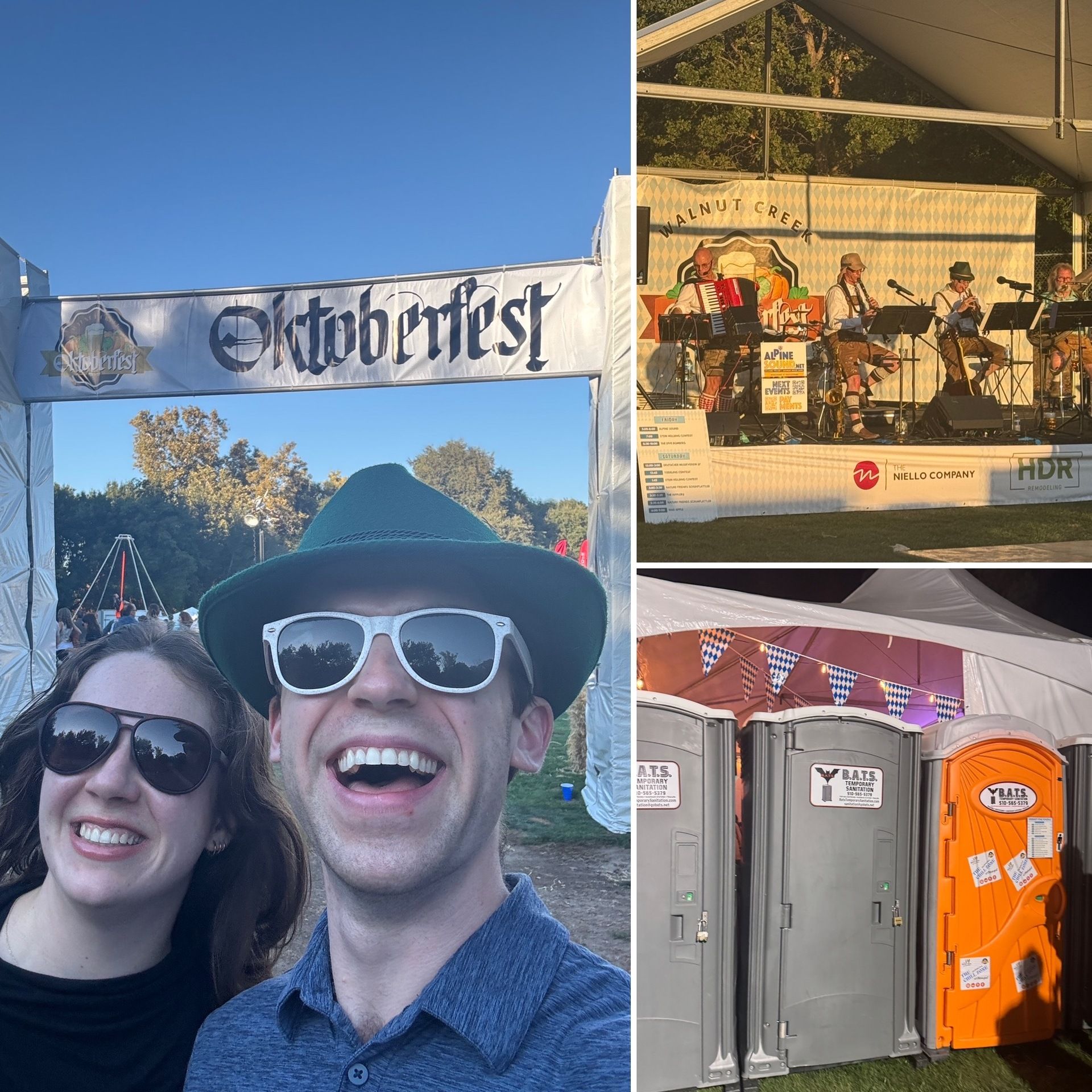 At the end of our day, Rylee and I went to our first Oktoberfest event of the season, Walnut Creek Oktoberfest. While it was targeted at being a family-friendly event, you could still grab a stein and grab one of the many local breweriesâ festbiers and listen to traditional German tunes. However, one fun addition was the Chill Zone, a 21 and up area with a DJ, only accessible by entering a special porta-potty. During the night, we ran into two people who had just moved here from Germany. We asked what they thought about this variant of Oktoberfest, and they point-blankly told us that this doesnât even come close. They did say that the pretzels were good, though, which I guess is saying something.