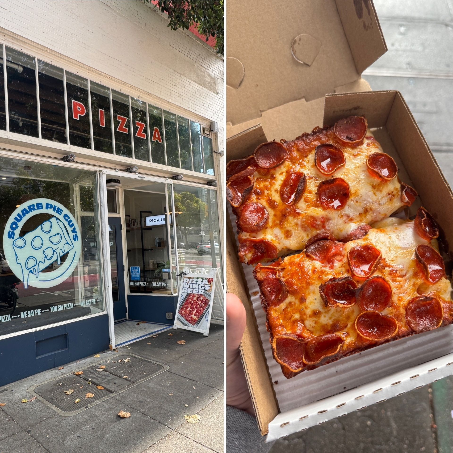 Iāve been on a pizza kick, so when my public transit got delayed on the way back, I was *forced* to stop for lunch at Square Pie Guys, a Detroit-style pizza joint in SoMa. I got a dang good half pepperoni pie, with what I feel was an optimal ratio of pepperoni based on the size of the pizza. The edges were extra crispy and caramelized too, just like any good Detroit-style slice.