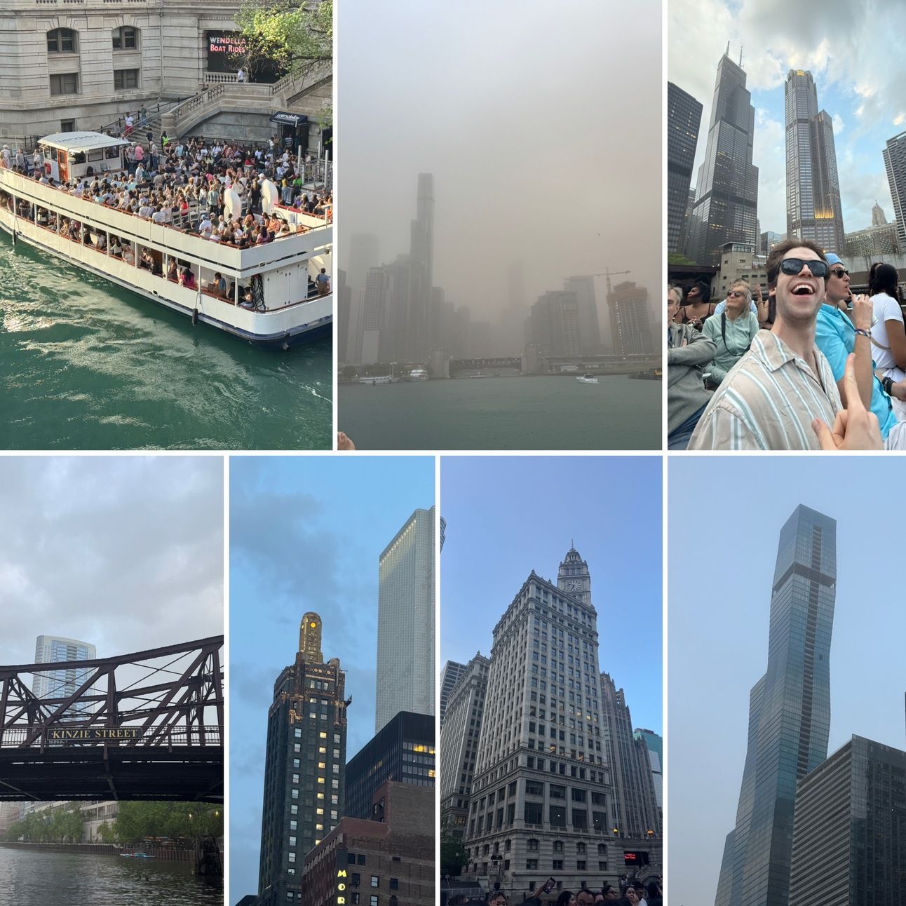 Later that day, we took an architecture Cruise. However, the moment that we boarded, we all received an emergency weather notification about an impending Dust Storm. We could see the dust storm come in, and at the height of the storm, it was quite eerie. The city looked straight out of a Batman comic. However, the storm did eventually die down, and we got to see all of the incredible architecture of Chicago, including the Willis Tower. We also went under Kinzie Street, which is where the infamous Dave Matthews Incident occurred back in 2004 (I am not going to go into details, but you can learn more about it here). Our tour guide told us the story and mentioned at the end that while we had to deal with a dust storm, there had been a far cr*ppier architecture cruise.