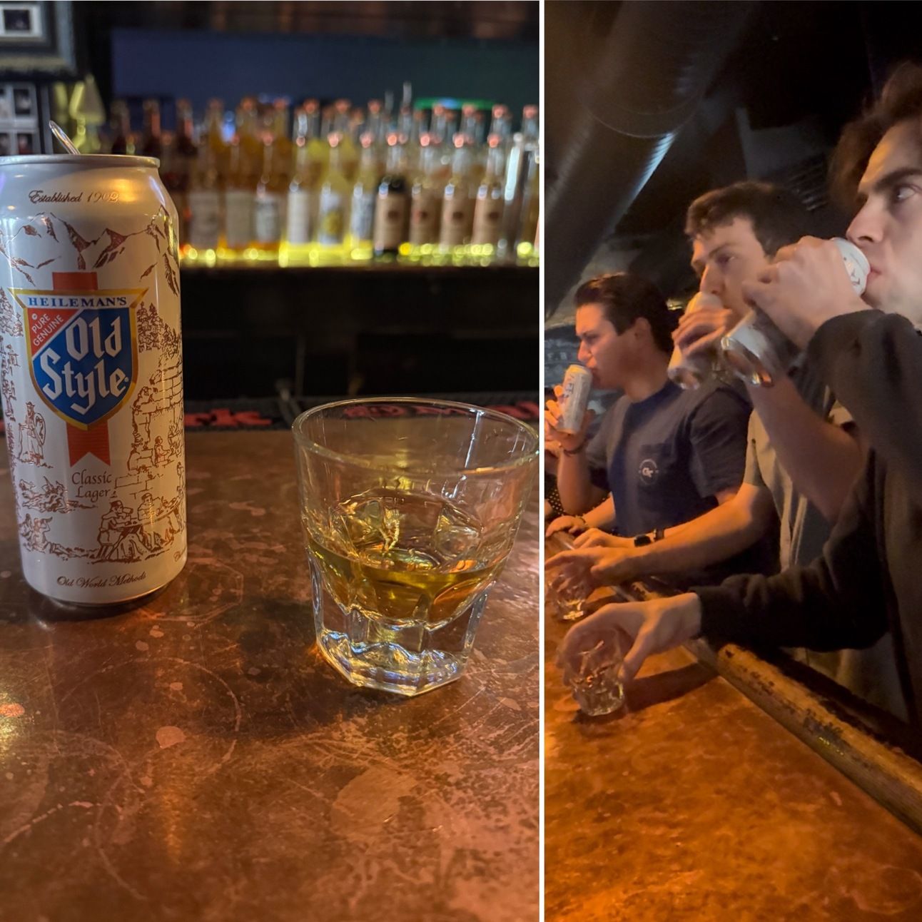 During this pizza crawl, I was able to try the Chicago Handshake. For those of you that don’t know, A Chicago Handshake is a shot of the local Jeppson's Malört (a Swedish Spirit that was introduced to Chicago in the 1930’s) followed by a can of Old Style beer. I have heard online that Malört doesn’t have the best reputation online, with some reviews commenting on its “Sharp, bitter grapefruit with a paint thinner finish” or that it tastes like “pepper, then basement”.
