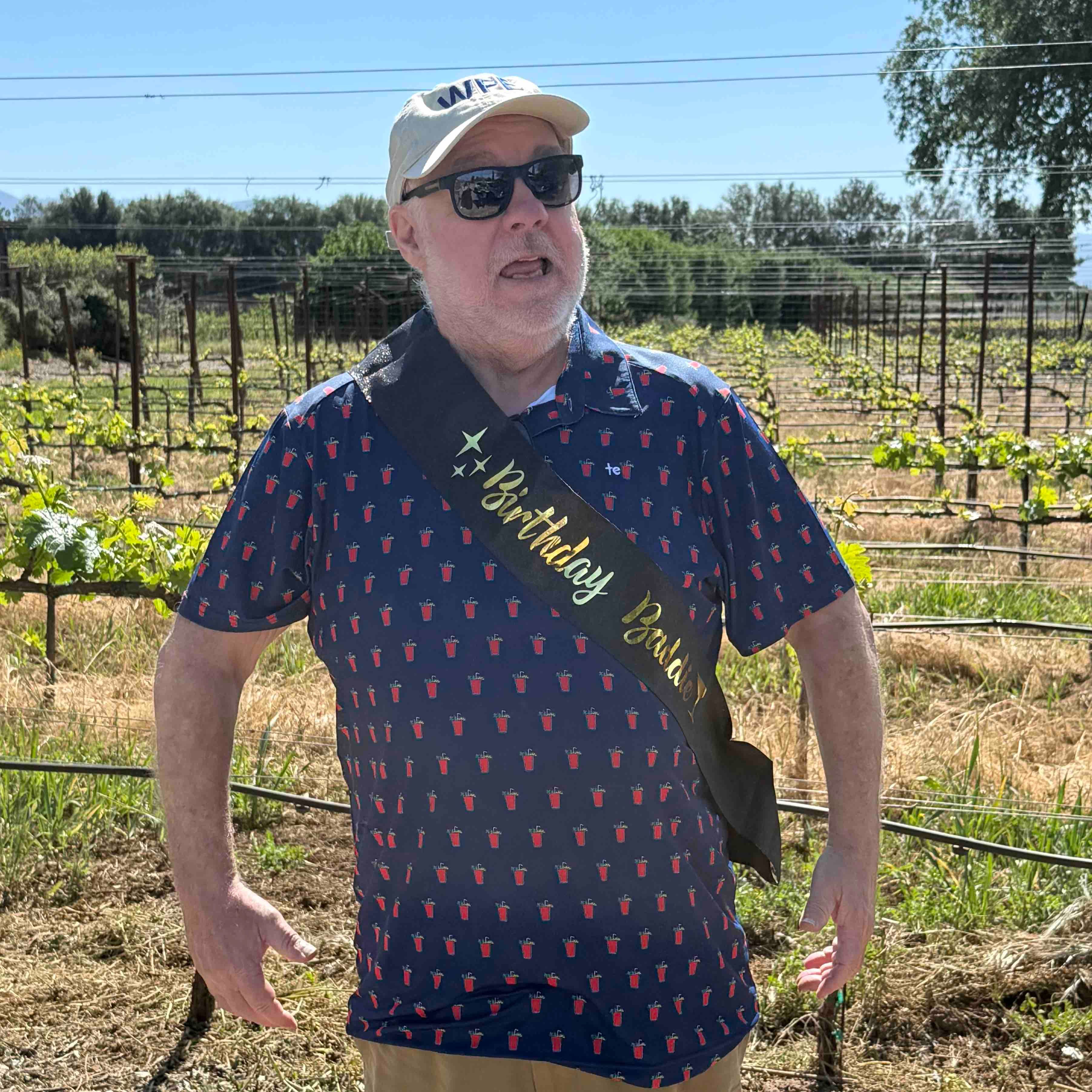 The next day, we decided to take a day trip up to Napa, and because it was my dad’s birthday next week, we surprised him with the “birthday baddie” sash. Our first stop was Hagafen Cellars.